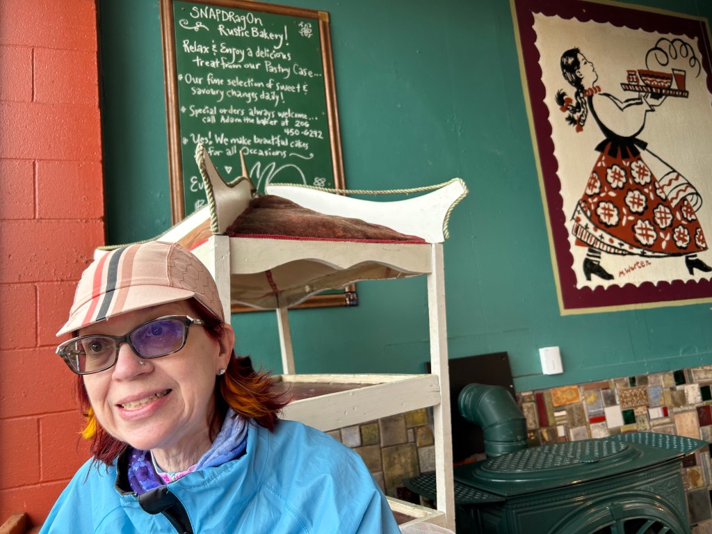 Lastly, but most importantly, we left a couple of stickers at the Snapdragon Bakery. If on Vashon, you must stop. It is criminal if you do not. Our lovely server is going to put one of the stickers on her car.