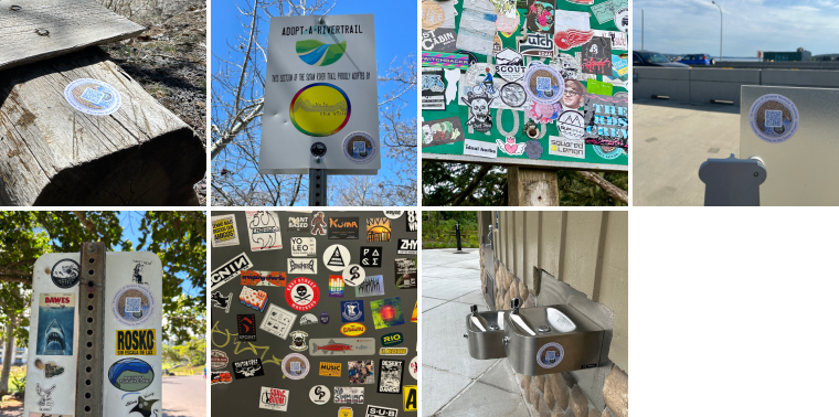The two in California are in Susanville, one on a bench on the Bizz Johnson Trail, and the other on a river trail in Susanville…the only urban trail there. These were my first plants. I’ll update with new posts as time passes. See if you can guess where all the stickers above are, and maybe go visit. It’s kinda like geocaching right?