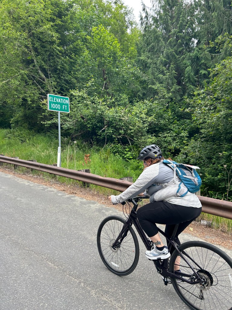 Serene, my niece, came along with us and she was a trooper. She hadn’t ridden a whole lot before that and a 10 miler was giving her hand numbness, but she bravely went along. It was a press but she made it to Hoffstadt Creek at 1500′ and 39 miles. She came back down the road in the rain but she was still smiling at the bottom. Chapeau!