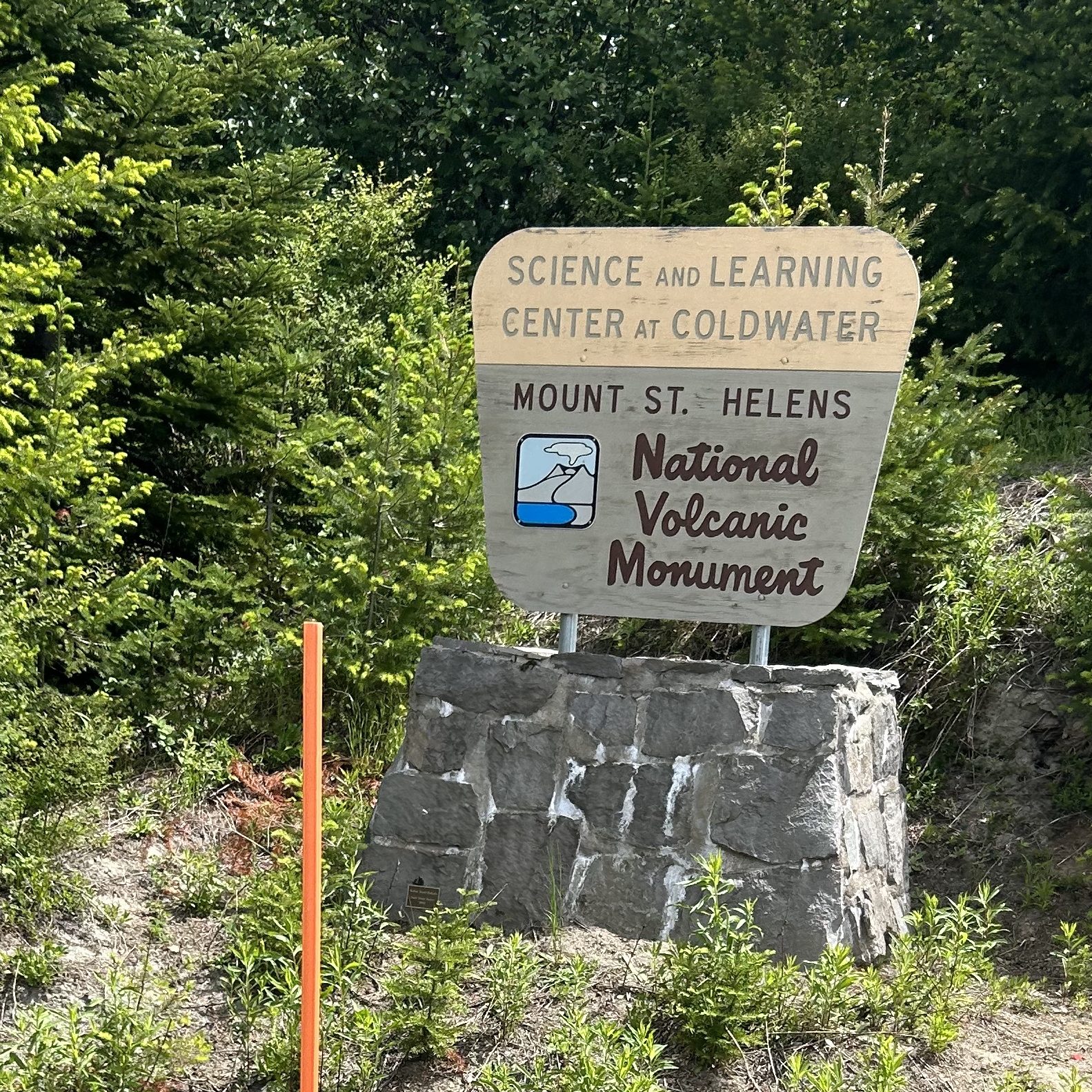 I planted a sticker by the Coldwater Visitor Center but a respectful distance from park property. Road signs are fair game.