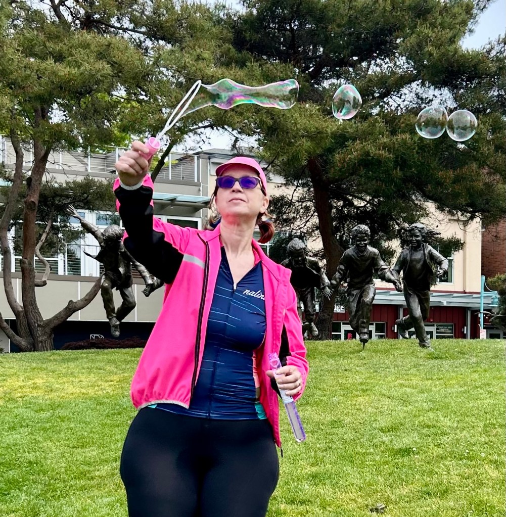 Like two other events, this ride endeavors to support all riders with multiple distances. The sights are a bit familiar, but the spirit is good, and the spirit is positive as evidenced by the bubble blowing.