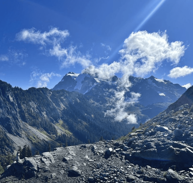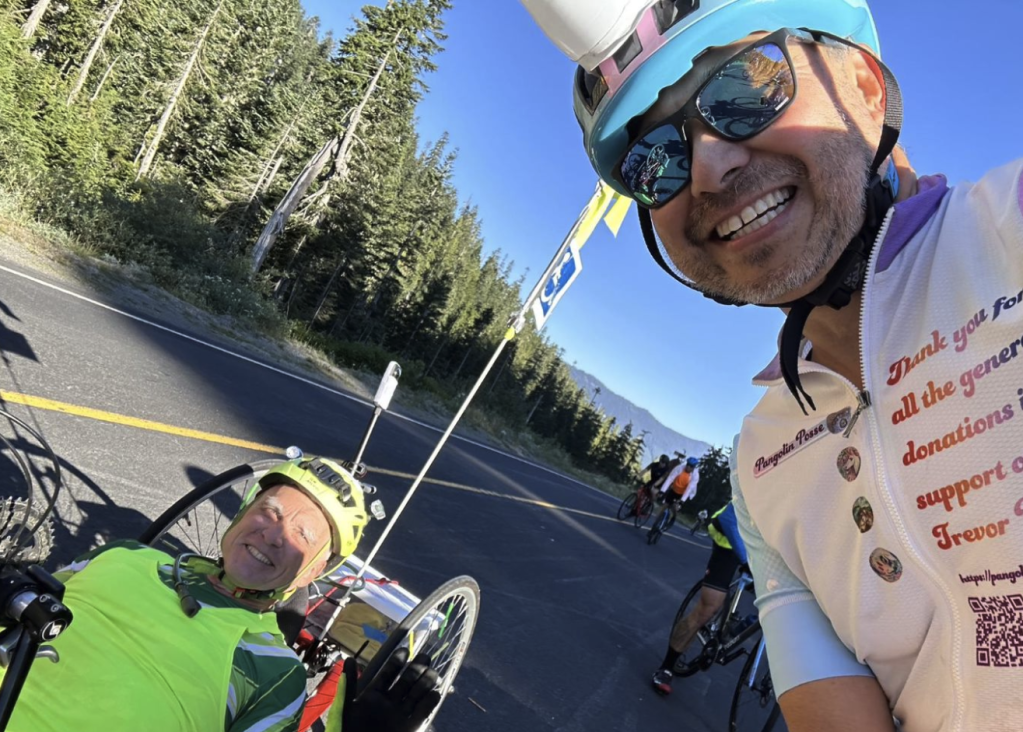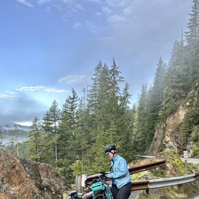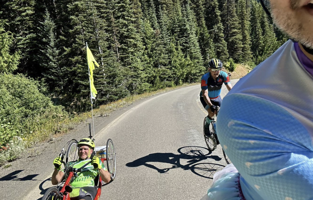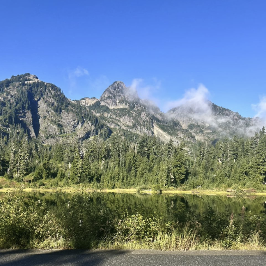 Mt. Baker Hill Climb was probably the most welcoming and beautiful ride out of all four. Unlike the other rides with volcanic peaks, you get TWO peaks for one. The ride actually goes between Shuksan and Kulshan (Baker), with alpine lakes on the way, much like RAMROD. How this ride differs from the others is that it’s an ACTUAL race. There are timing chips and people win awards at the top. It’s also a ride for anyone wishing to do it, regardless of locomotion. They do it with 3 divisions, each starting at separate times. The “Competitive” group starts last and has hosted former racers like Phil Gaimon. There’s a “race curious” “Recreational” group that starts 2nd, and “Social” that starts first. All e-bikes are social and the social event is not timed. A timing chip is given for everyone for safety reasons. They keep a count at each stop to make sure everyone is accounted for and safe.