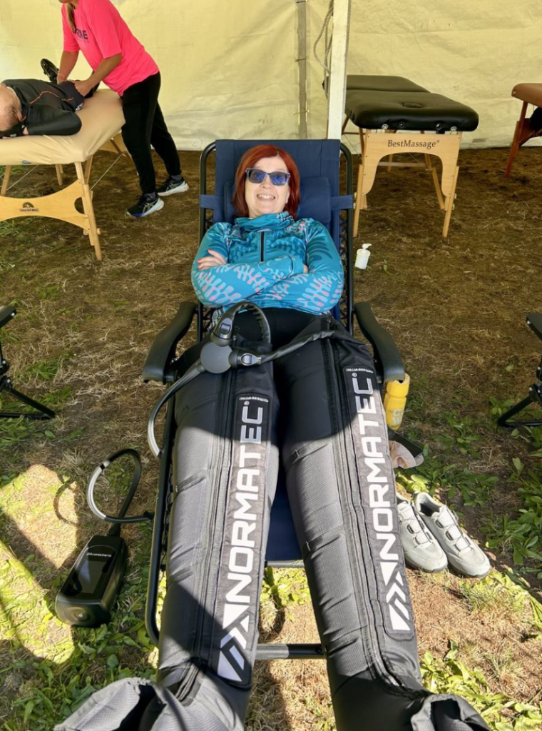 This year they had massages at the bottom, and one could try out Normatec compression legs and look really tall! Seriously though it was a great recovery treat.